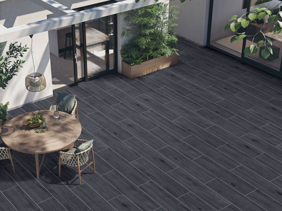Introduce natural warmth to your outdoor areas with Deckwood porcelain pavers, available in Amber, Caramel, Charcoal, and Pearl. Featuring a realistic wood look, Deckwood tiles offer the beauty of wood with the durability of porcelain.